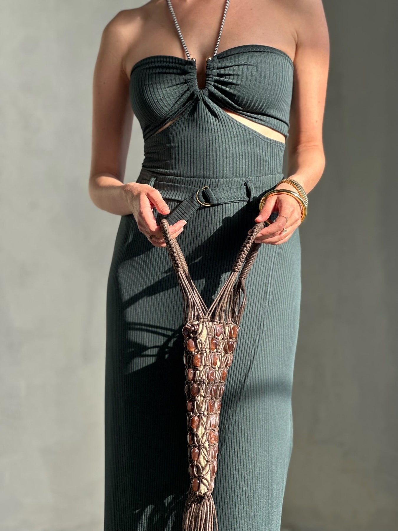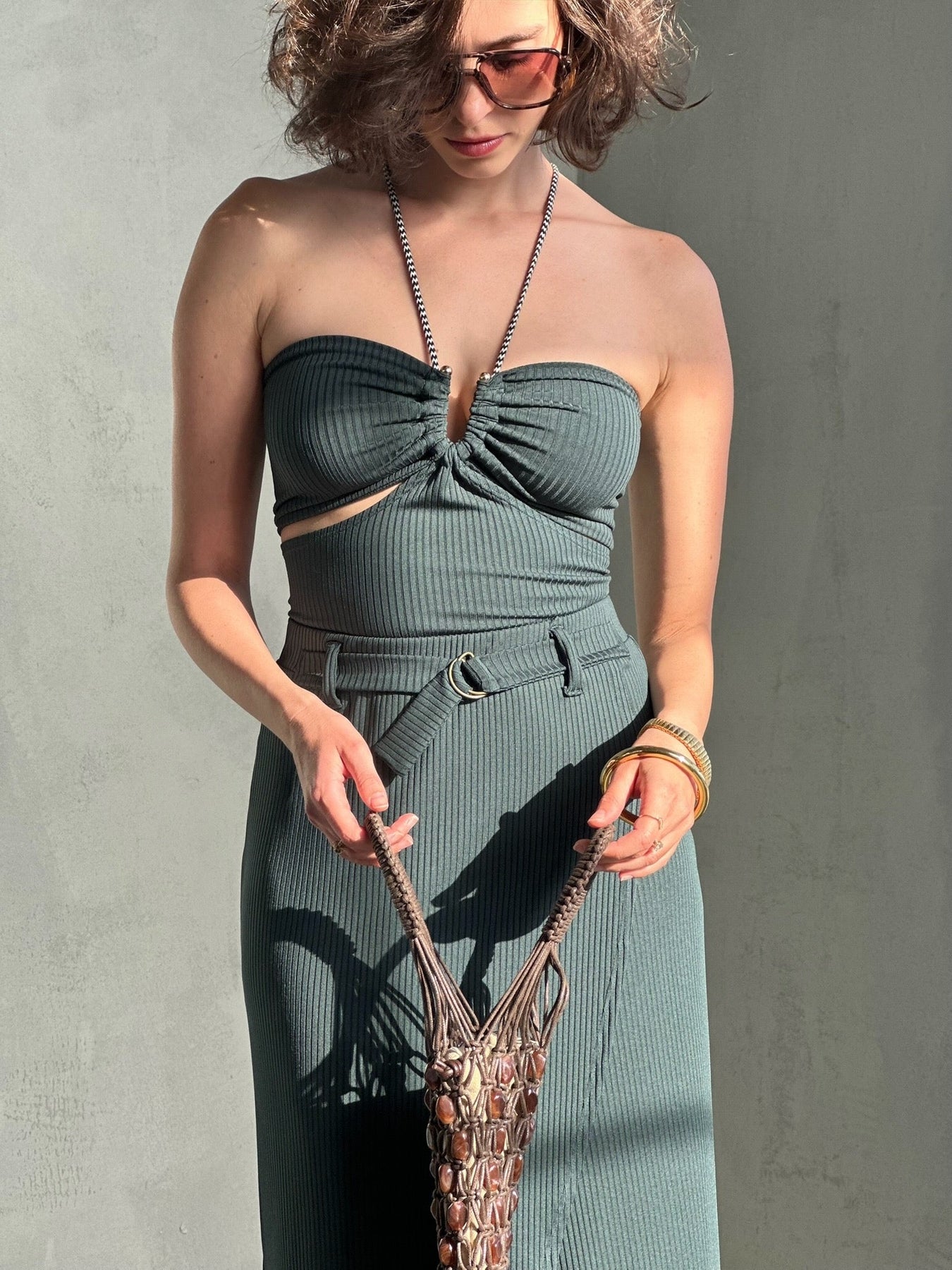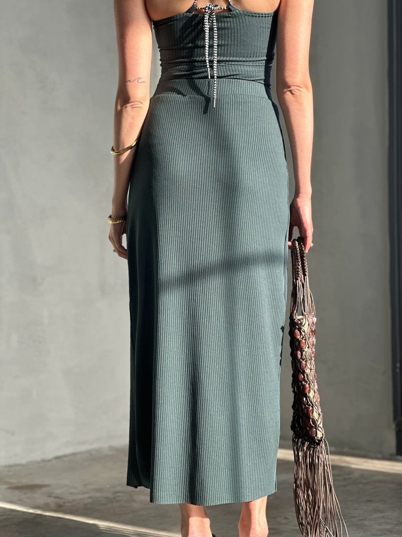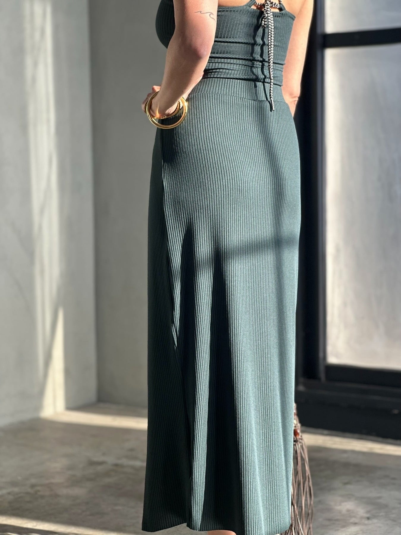 חצאית מבד ריב בייסיק נמתח ונשפך. באורך קרסול.