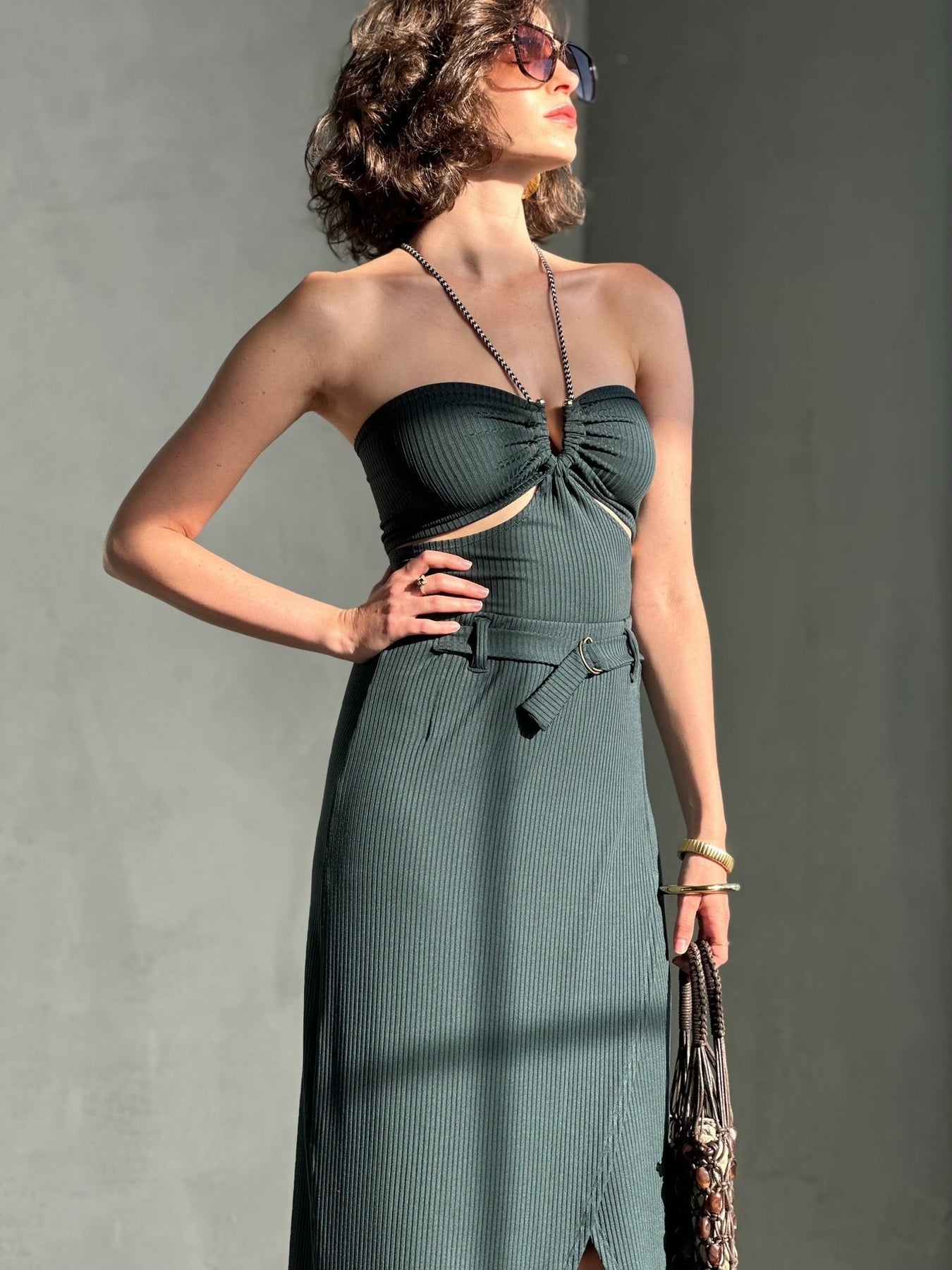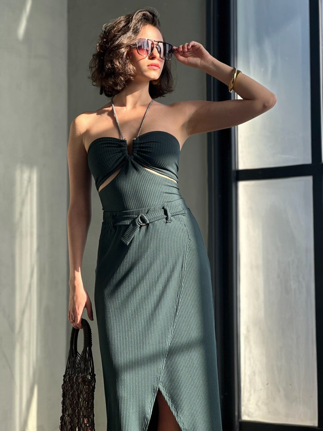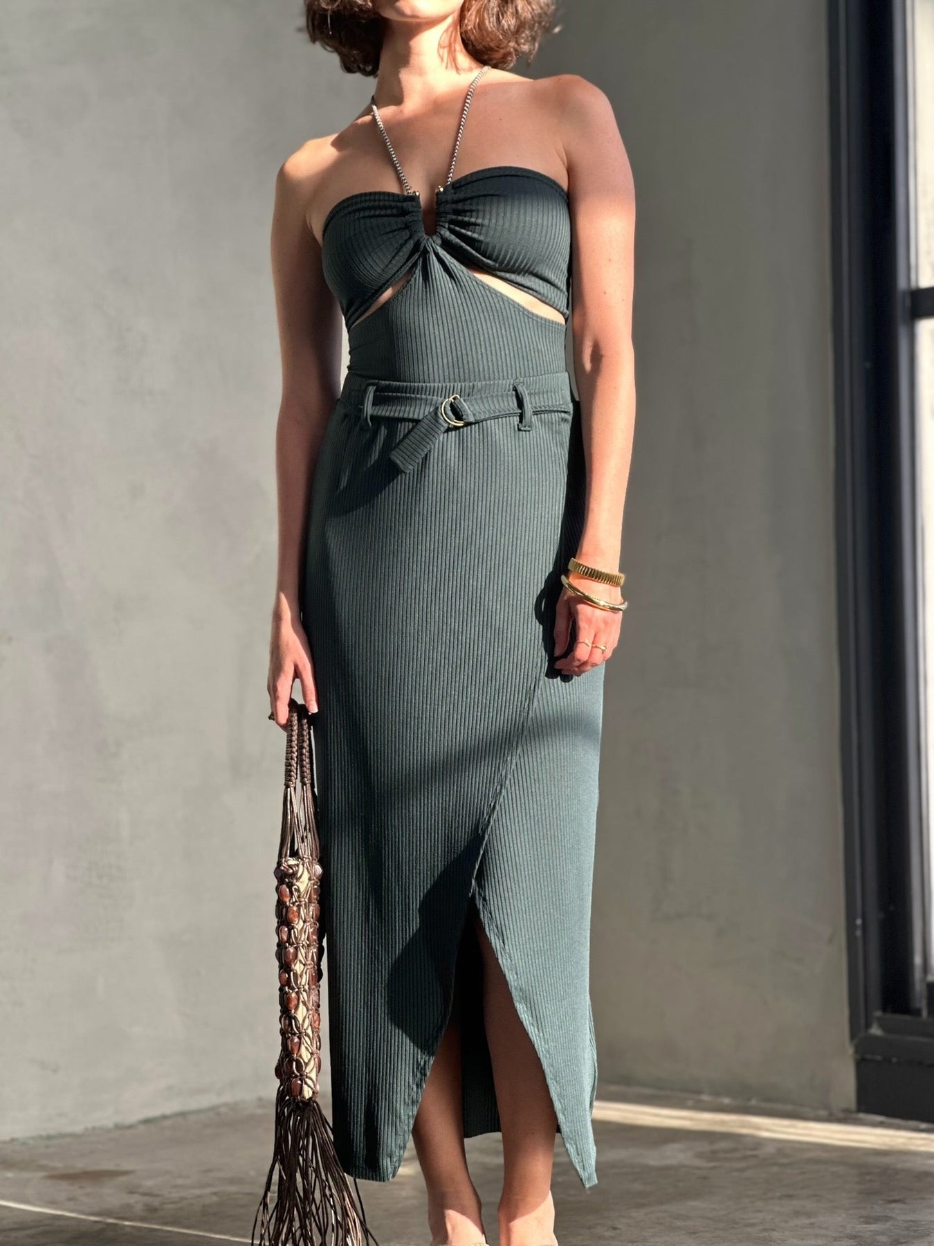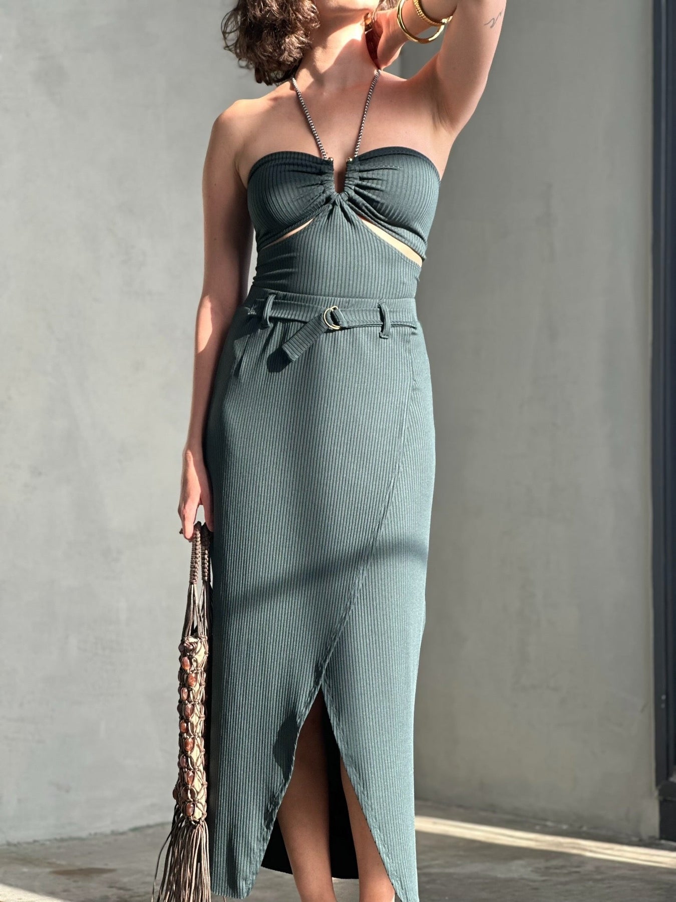 חצאית מבד ריב בייסיק נמתח ונשפך. באורך קרסול.