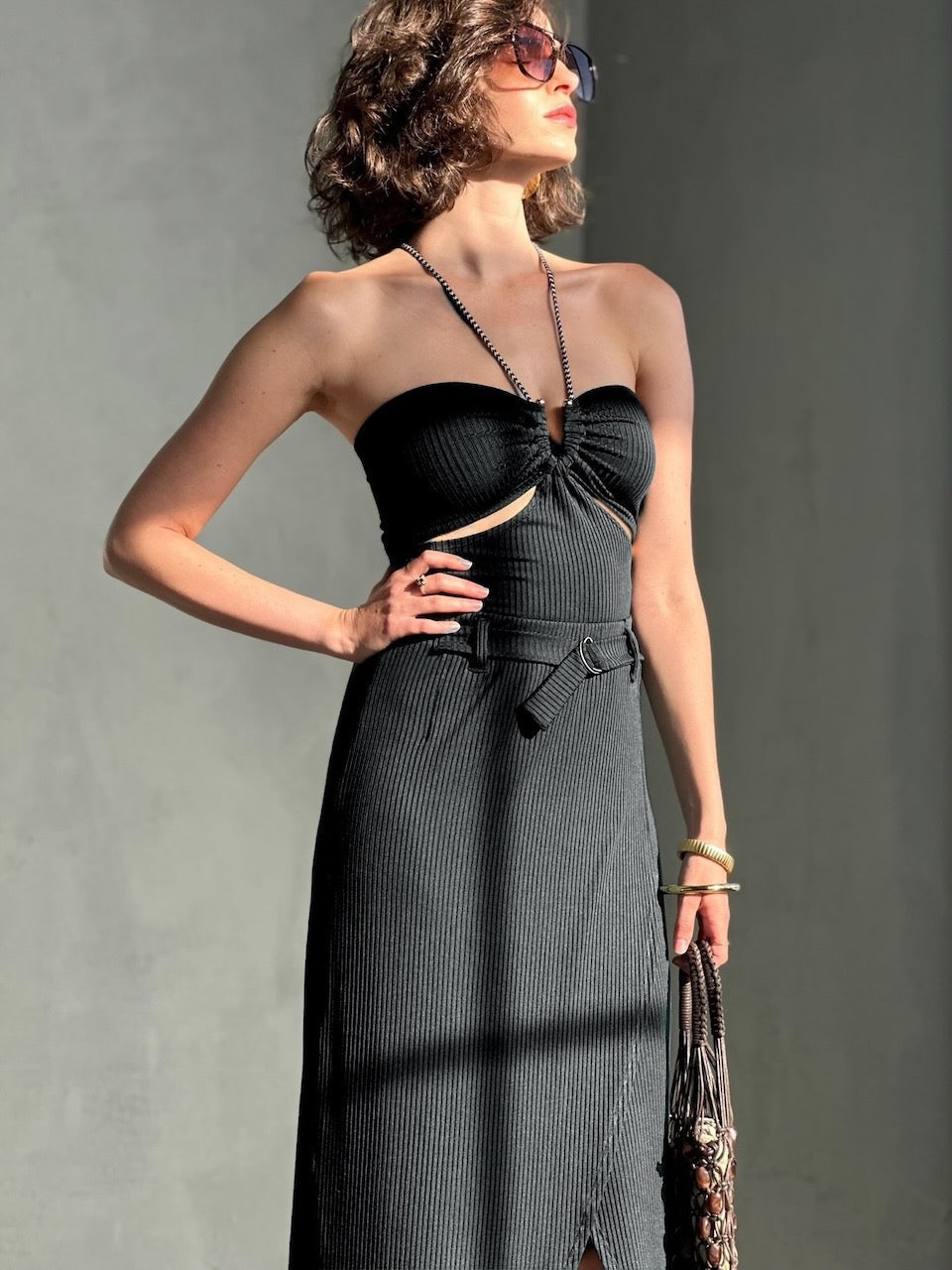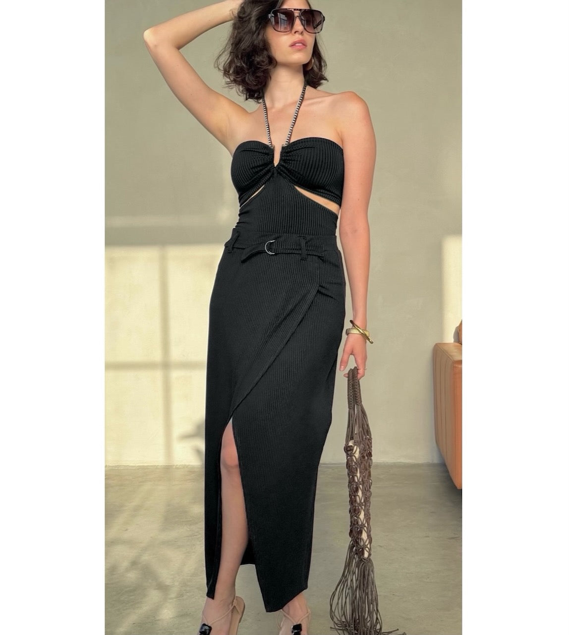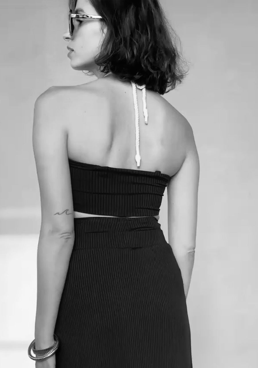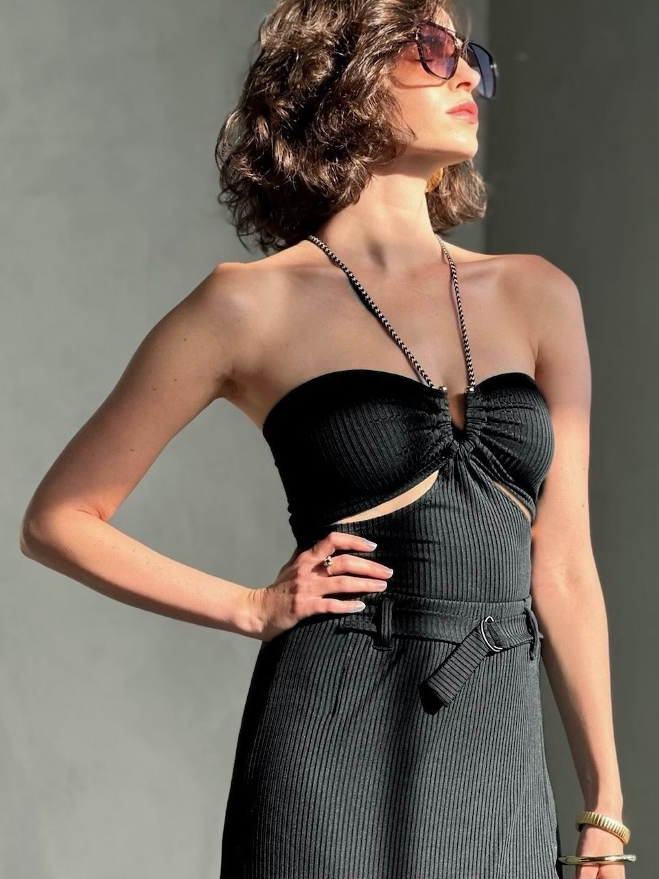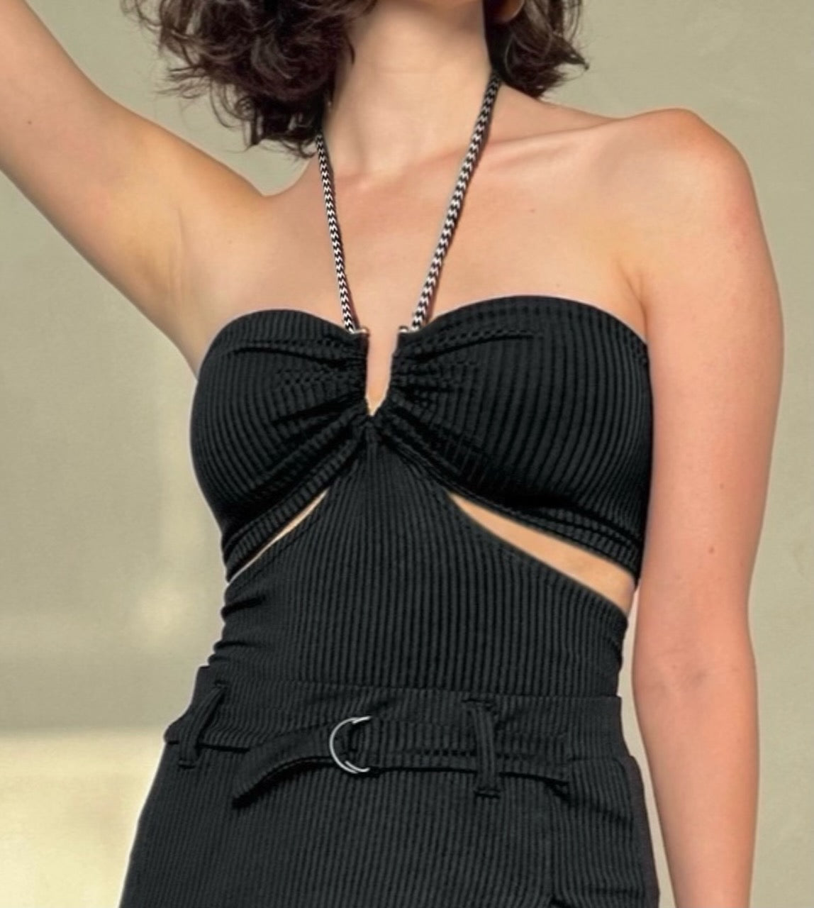 הטופ חתוך כך שחושף פתחים עדינים באיזור הצלעות ולרוחב הגב.