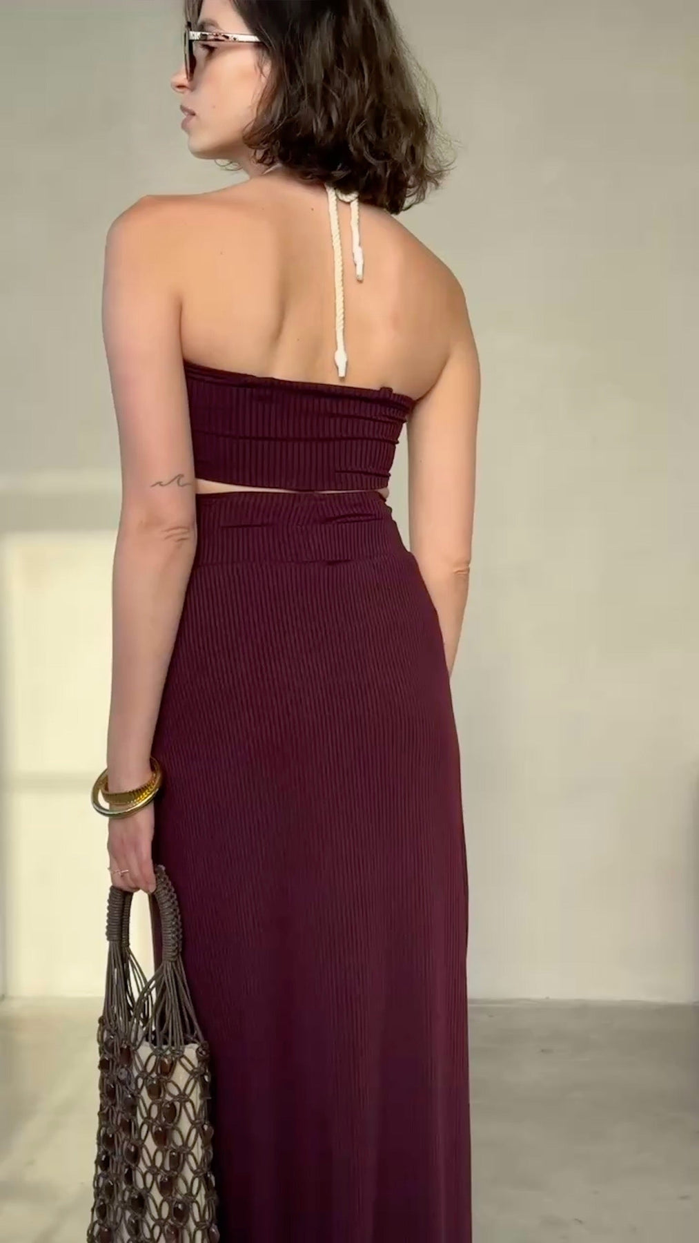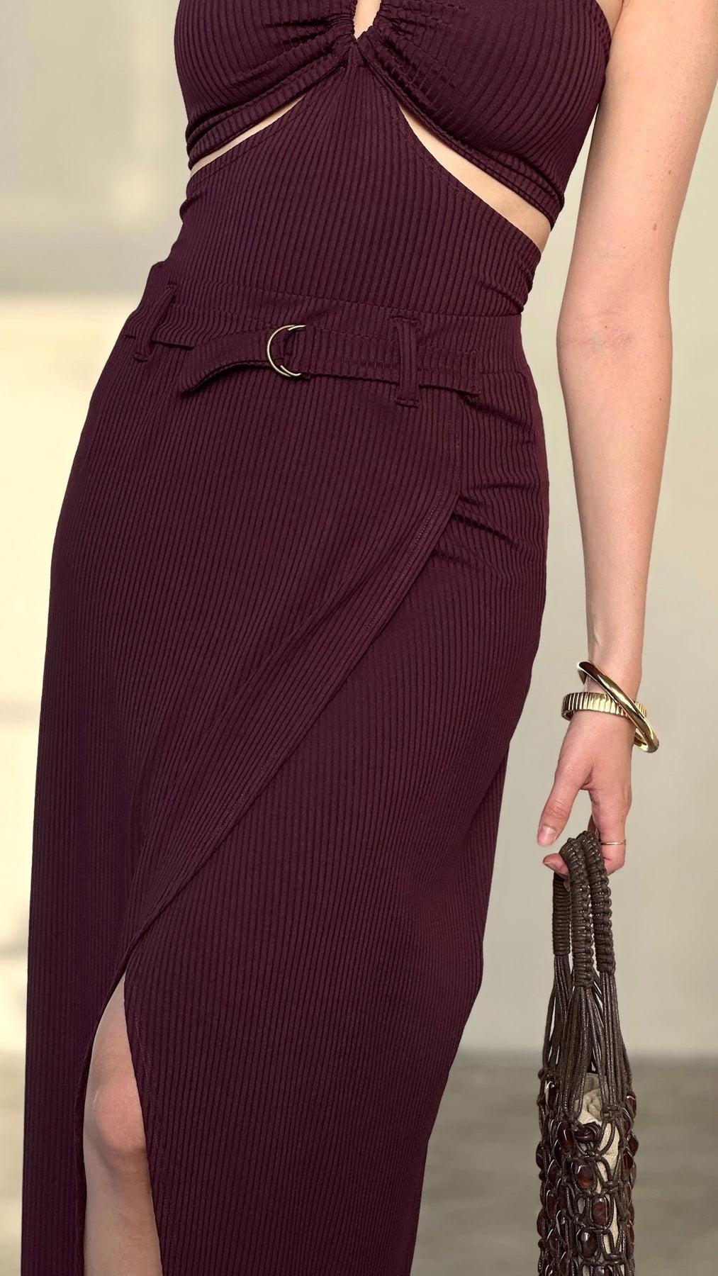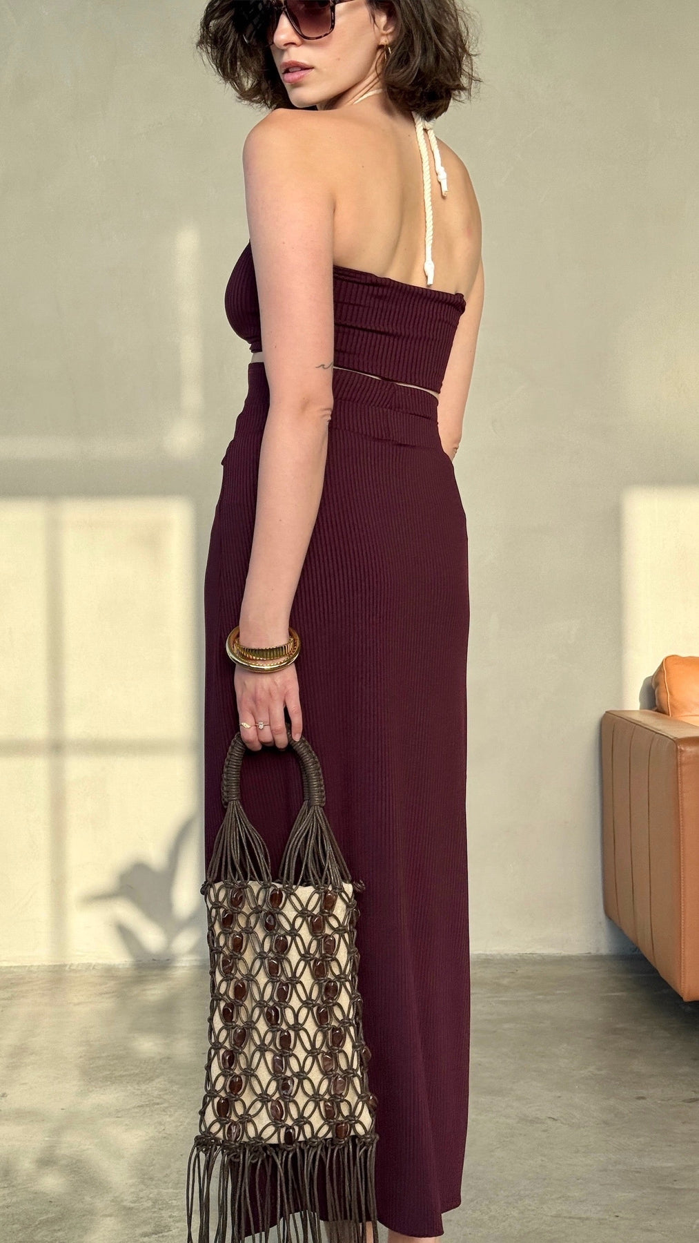 חצאית מבד ריב בייסיק נמתח ונשפך. באורך קרסול.
