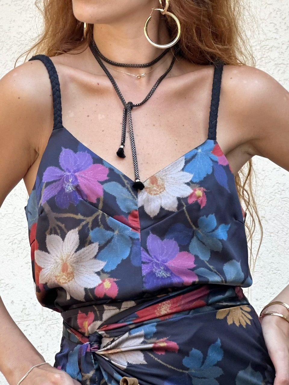סט חצאית פלמה + גופיית אתנה - שחור דהוי פרחוני